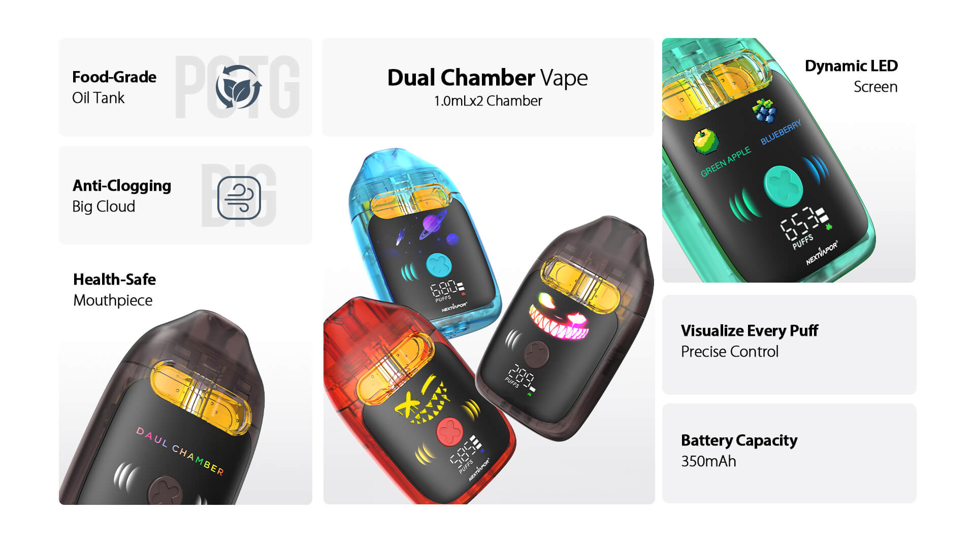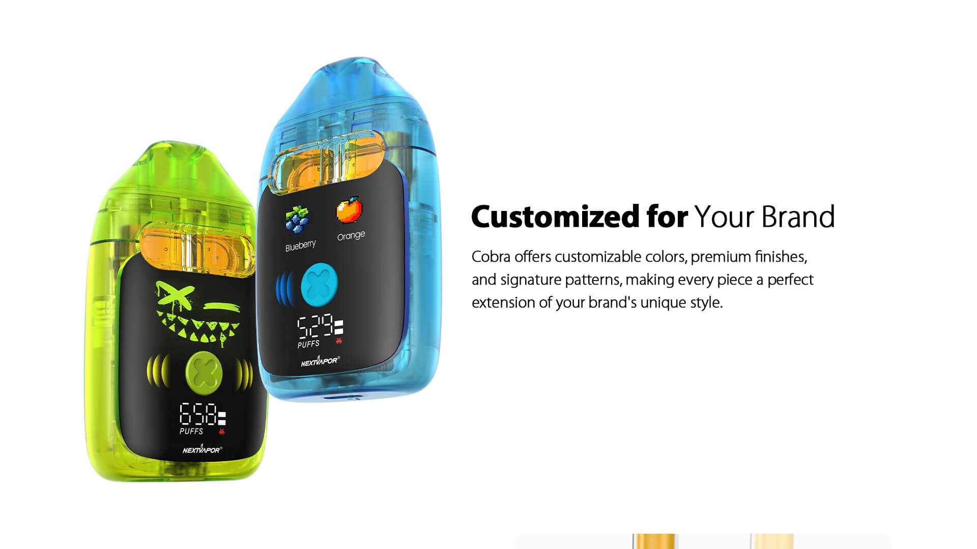 Cobra is a premium cannabis all-in-one designed for multi-flavor creativity and high-performance purity. Its dual-chamber system lets you enjoy three distinct flavors or blend them into a mixed profile, all monitored through a clear digital display with puff count and real-time status. A multi-function button offers voltage adjustment and preheat activation, giving you full control over distillate, resin, or rosin. Built with a postless structure and a 100% metal-free, cotton-free pathway, Cobra ensures clean, untainted vapor every time. With leak-resistant and anti-clog engineering and full support for automated filling and capping, Cobra delivers both purity and production efficiency in one advanced device.