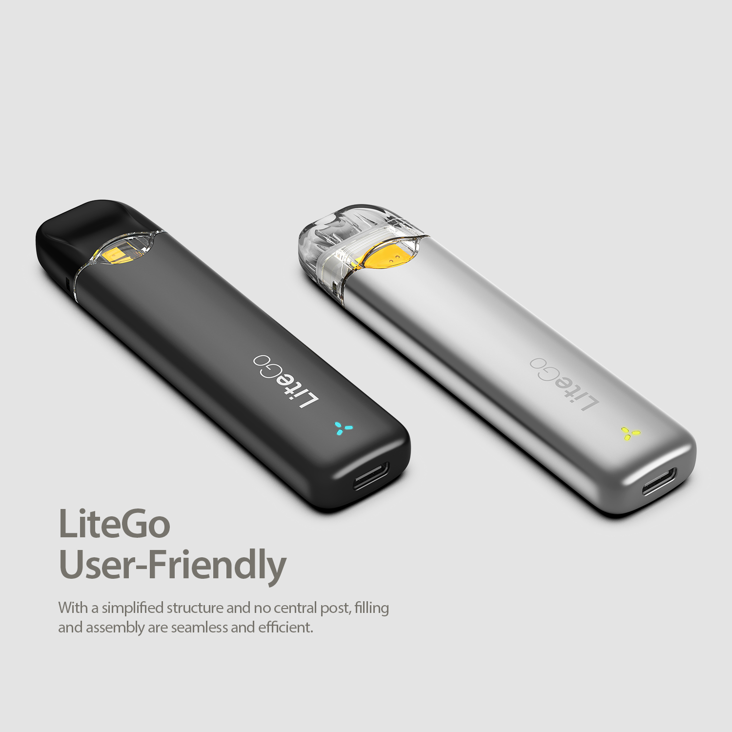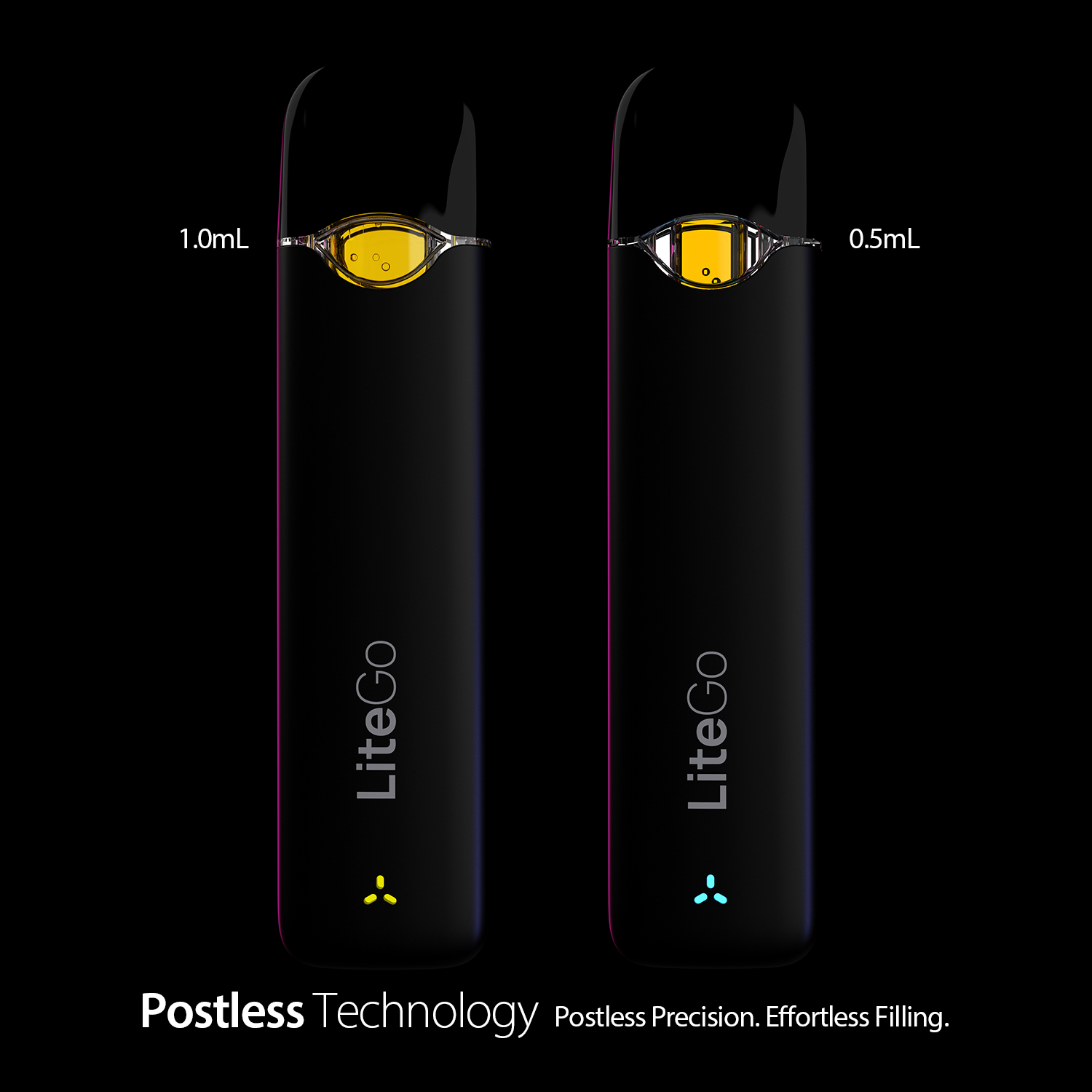 LiteGo — buttonless,  postless vape engineered for distillates, live resin, and rosin. With options of 0.5mL and 1.0mL, it delivers consistent flavor, smooth airflow, and a reduced risk of defects. Designed for efficiency and built for brands, LiteGo combines minimalist style with powerful performance to elevate every session.